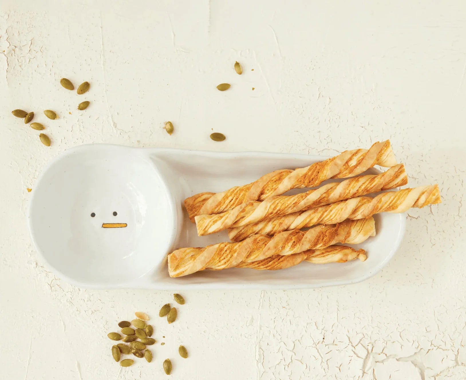 Crafted from high-quality, food-safe stoneware, this piece combines festive style and everyday functionality. The dish is thoughtfully designed with two sections, perfect for serving dips, candies, nuts, or small appetizers during the holiday season.