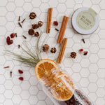 Ingredients: cranberries, cinnamon, cloves, oranges, pine needles, pine cones, bay leaves.
