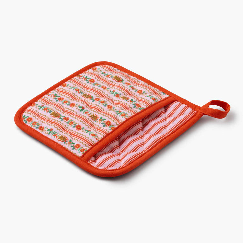 With contrast piping and a corner loop for hanging, our quilted pot holders protect from heat while doubling as a festive kitchen accent.