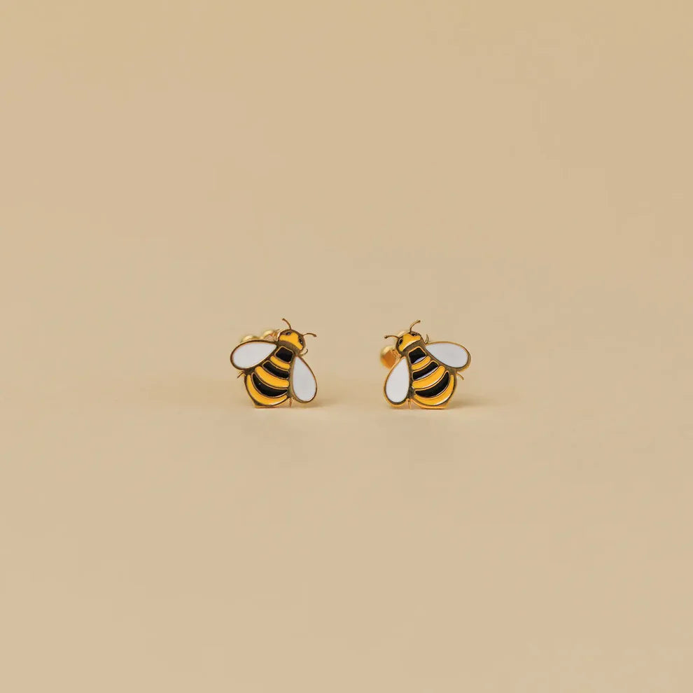 Bumble Bee Enamel Flat Back Earrings