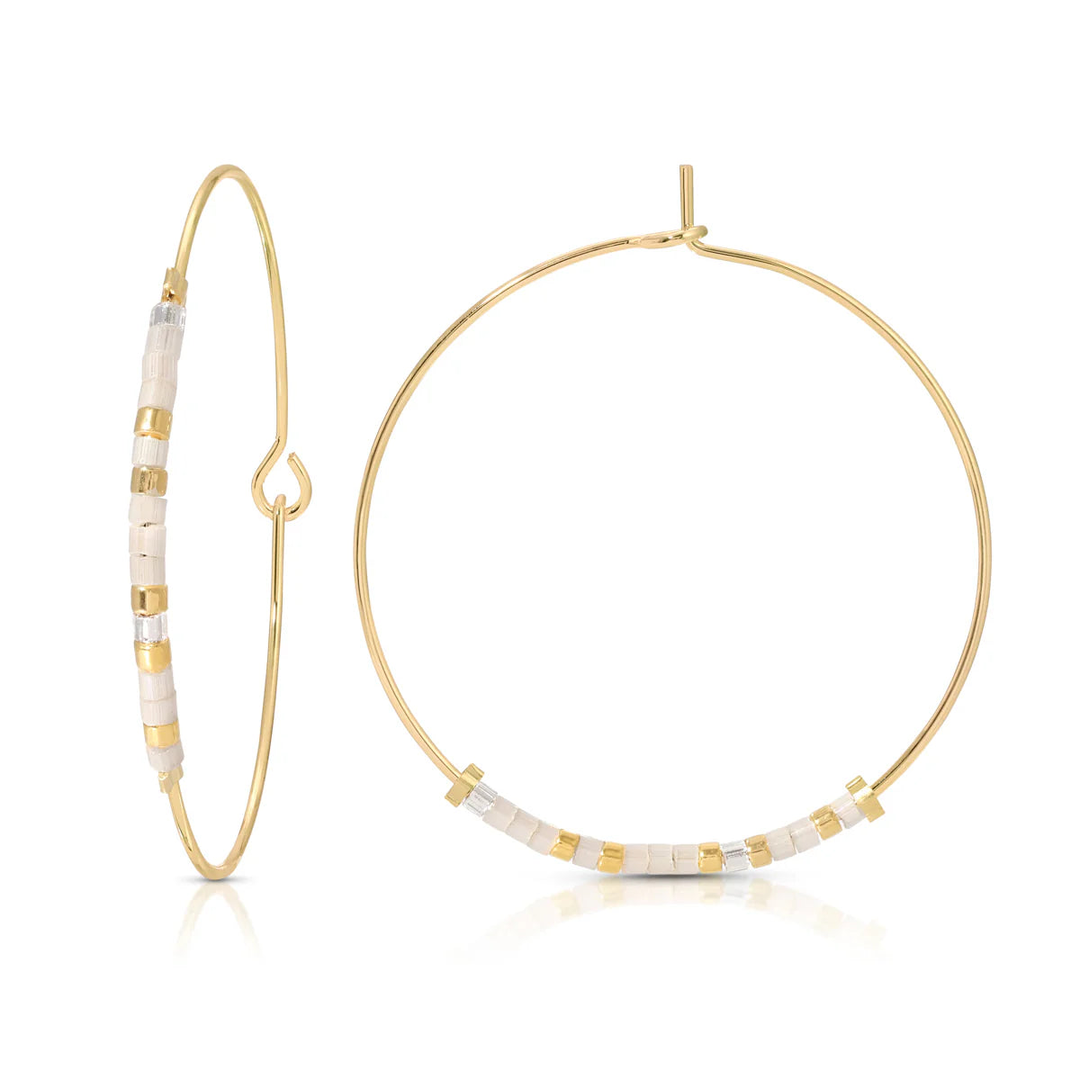 Hoop earrings are gold-filled and 35mm (1.3") wide.