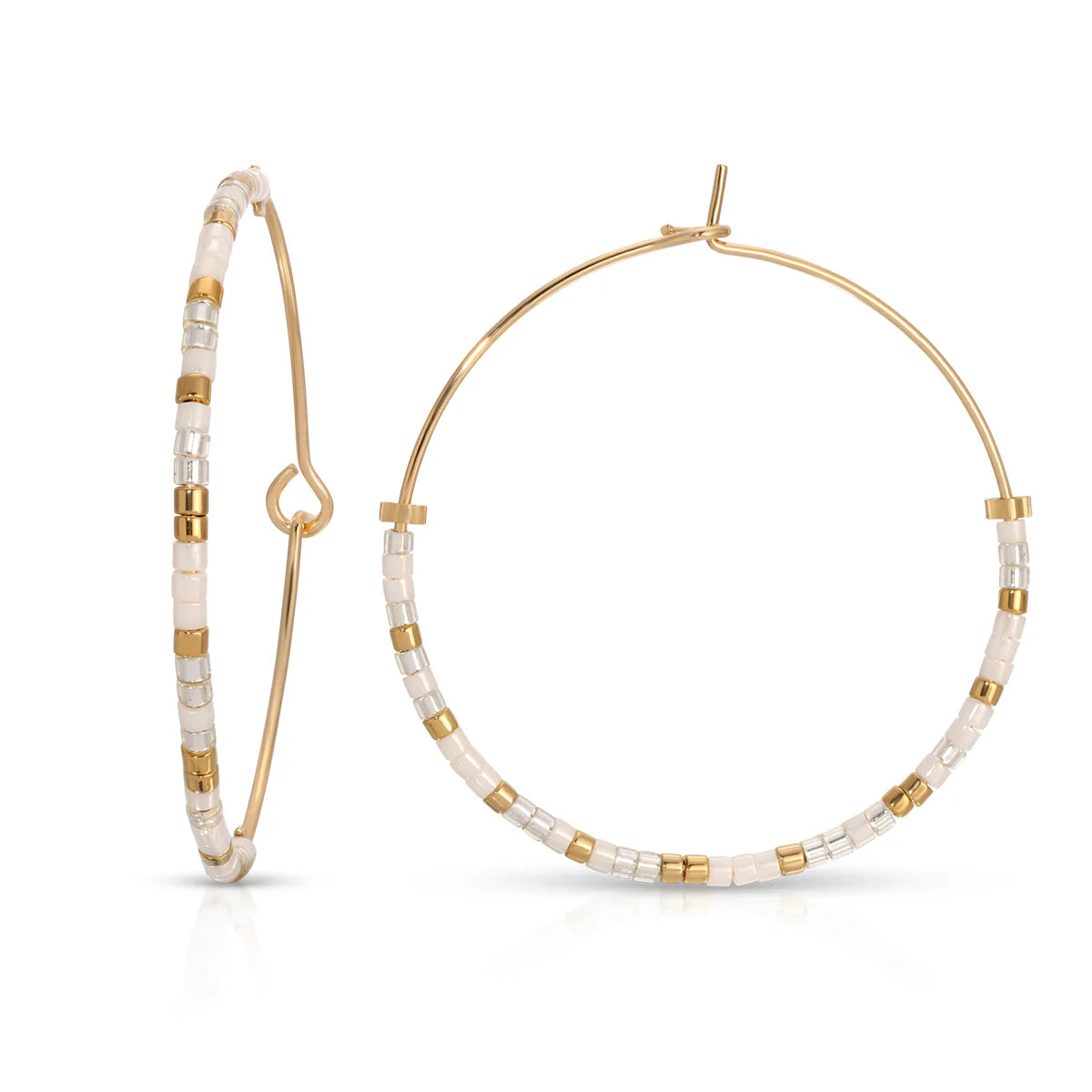 Hoop earrings are gold-filled and 35mm (1.3") wide.