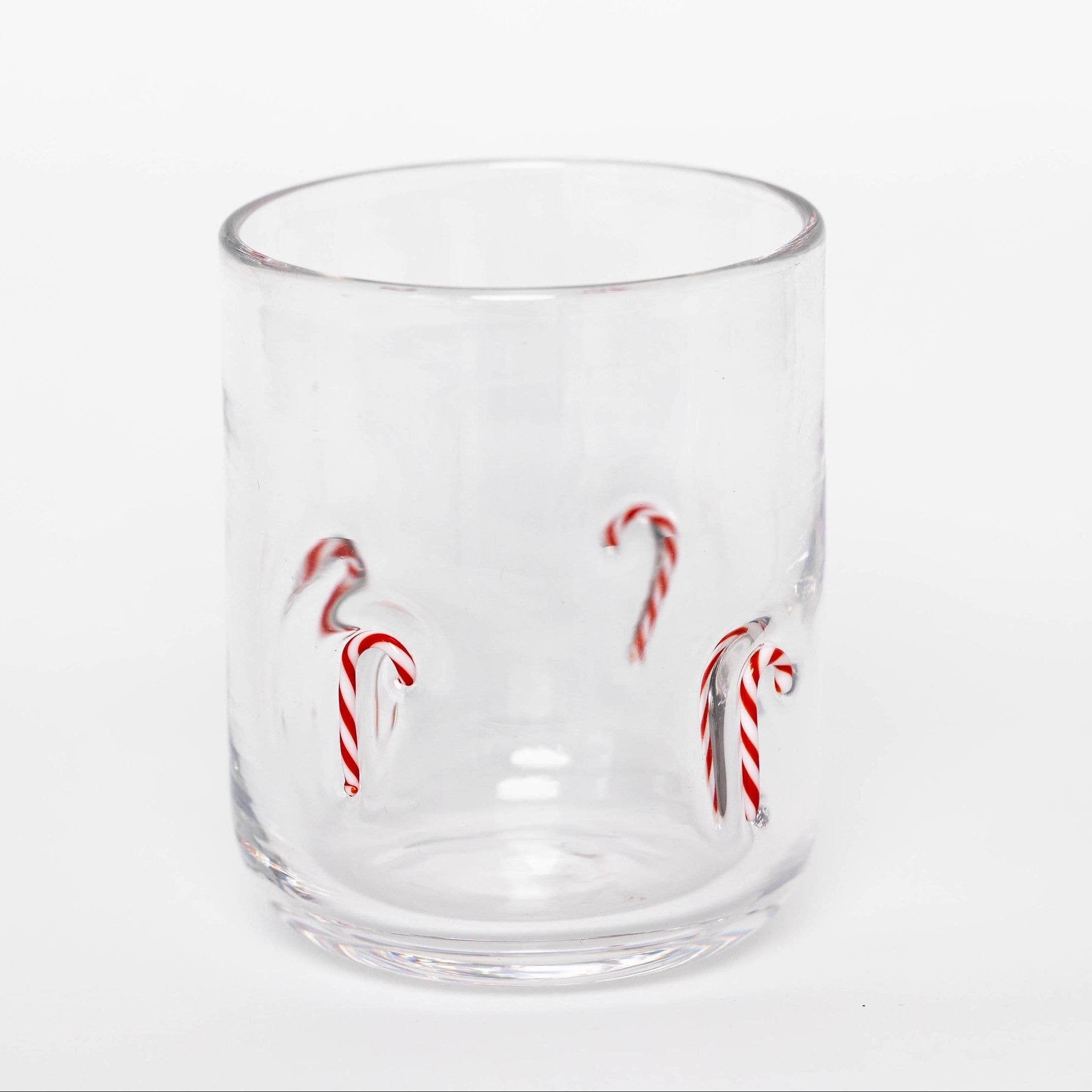 Handblown glass meets hand-pressed beads shaped into delicate candy canes, creating a festive sparkle that dances in candlelight. No two are alike, each icon is a work of art, crafted with intention and holiday cheer. More than just drinkware, these glasses are keepsakes. Whether clinking at a lively dinner or sipping quietly by the fire, they turn simple moments into stories. 17 oz.